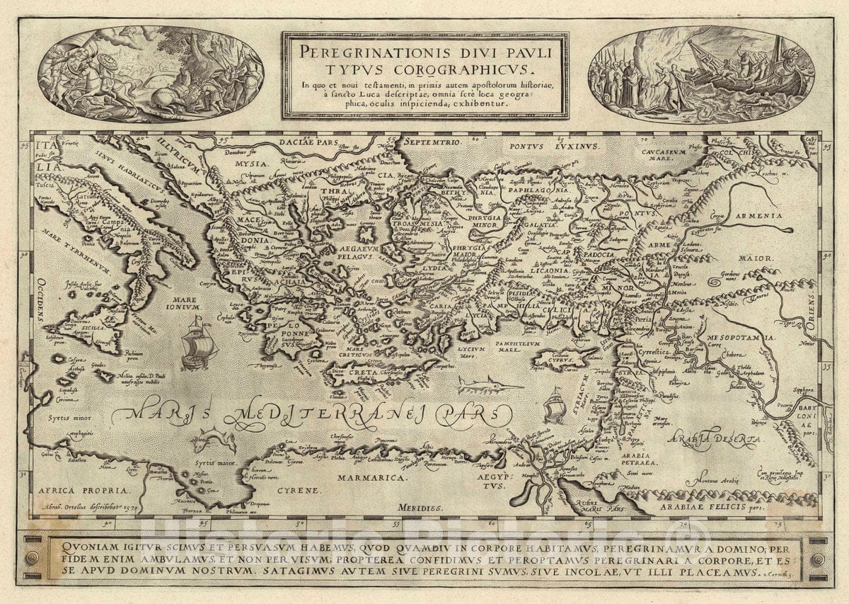 Historic Map : Mediterranean (iiii) Peregrinationis Divi Pauli Typus Corographicus, 1579 Atlas , Vintage Wall Art