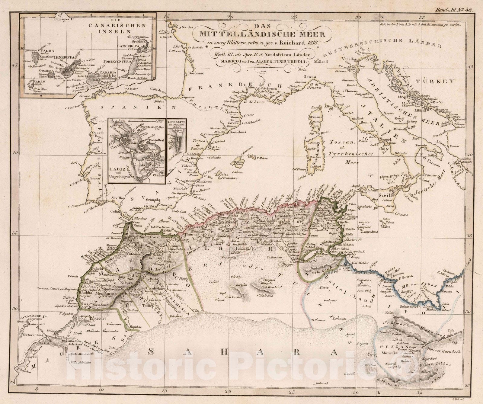 Historic Map : Mediterranean Region 1818 Das Mittellandische Meer in zwey Blattern,1818 , Vintage Wall Art