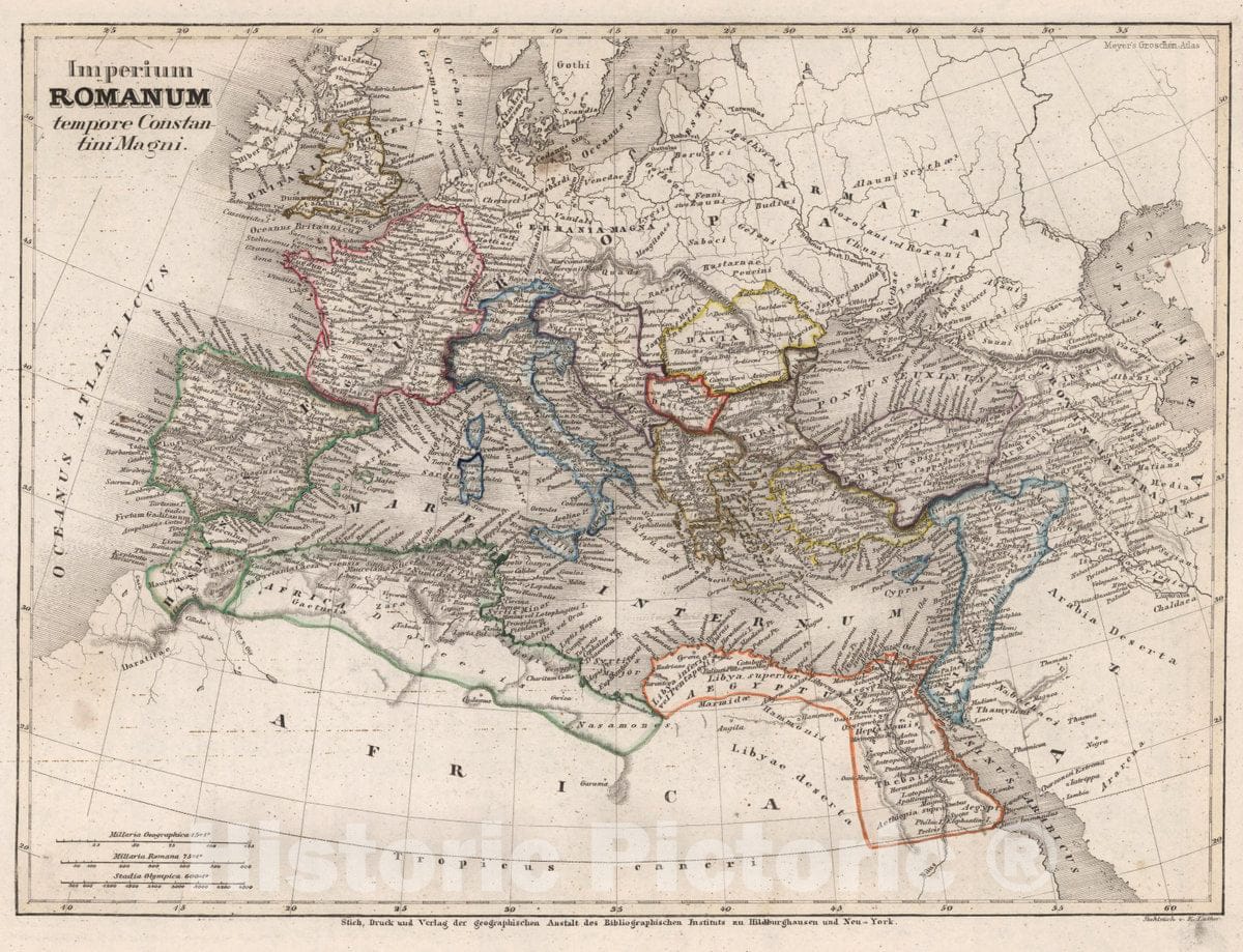 Historic Map : Mediterranean Region Imperium Romanum tempore Constantini Magni, 1854 Atlas , Vintage Wall Art