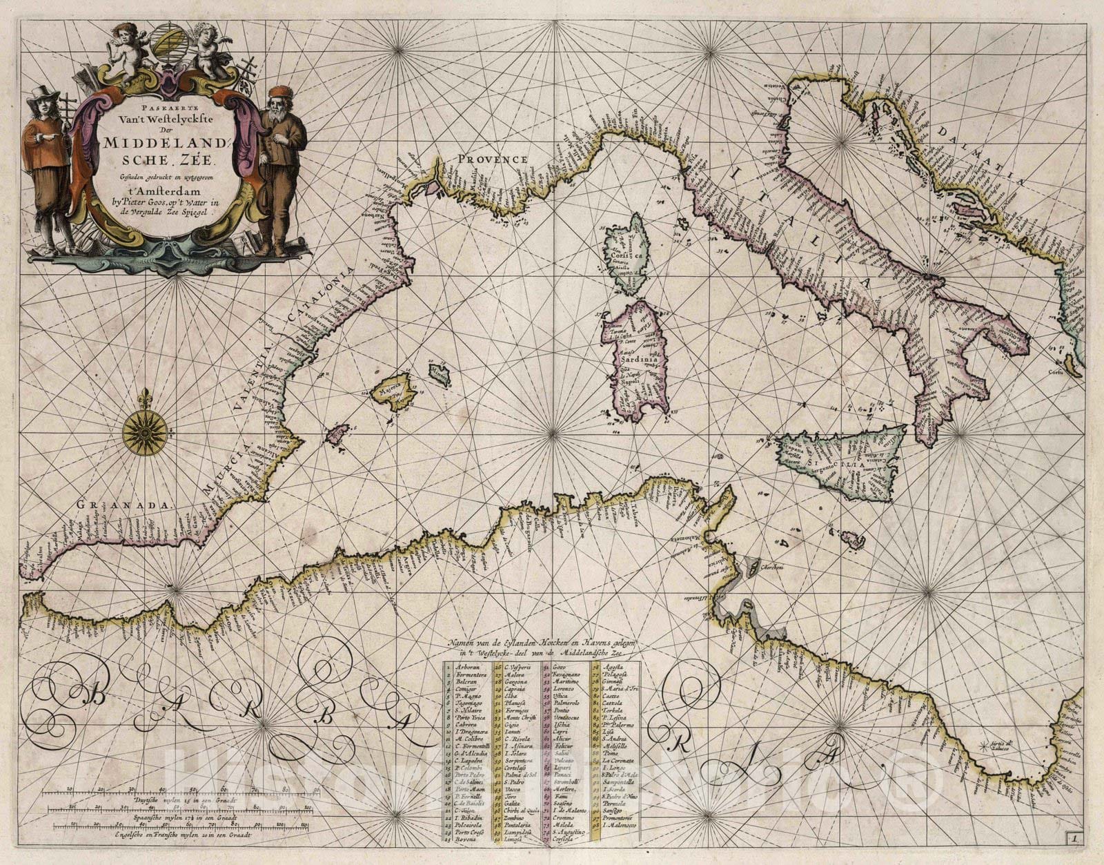 Historic Map : Mediterranean Sea 1667 Paskaerte Van't Westelyckste der Middeland Sche Zee. , Vintage Wall Art