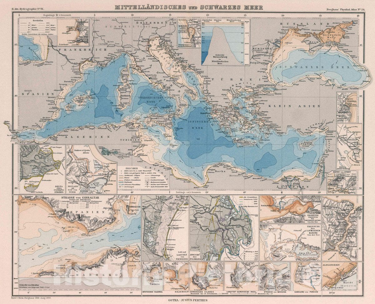 Historic Map : Mediterranean Sea, Europe Mittellandisches und Schwarzes Meer , Vintage Wall Art