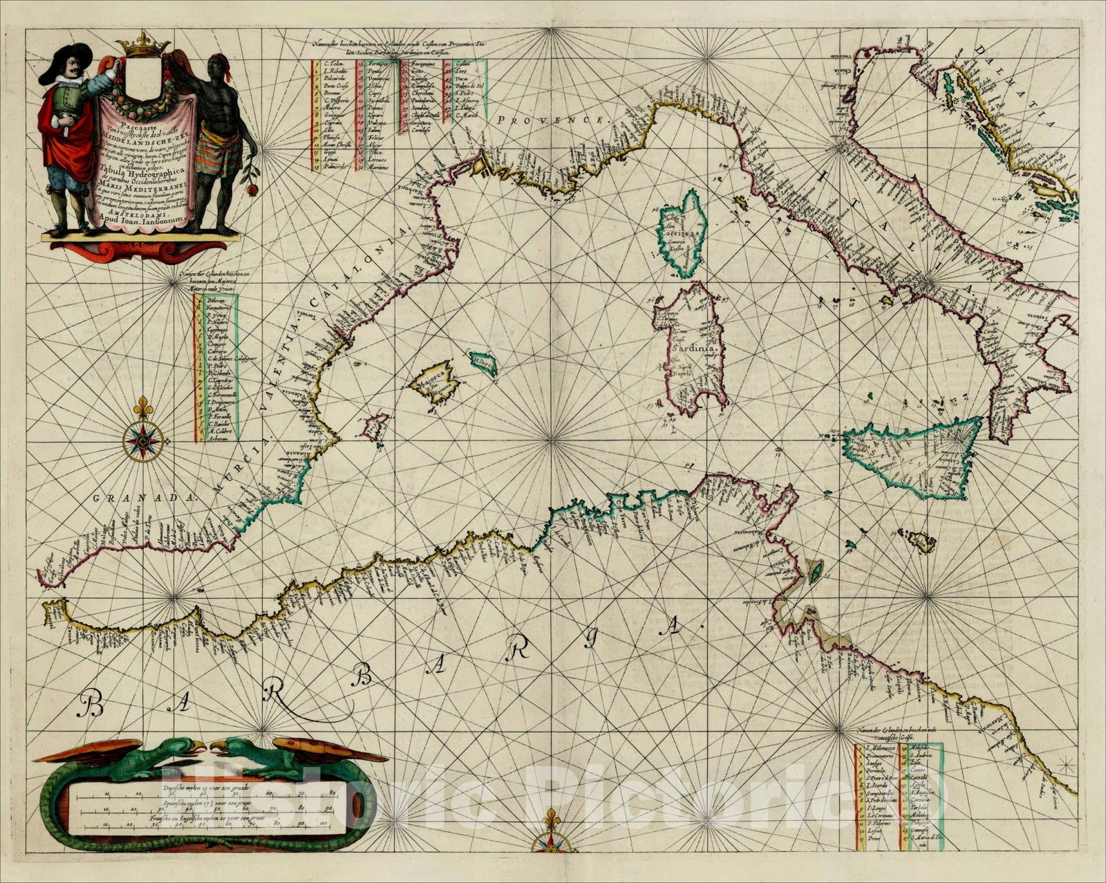 Pascaarte Van't Westlyckste Deel vande Middelandsche Zee, [Western Mediterranean], 1650, Jan Jansson