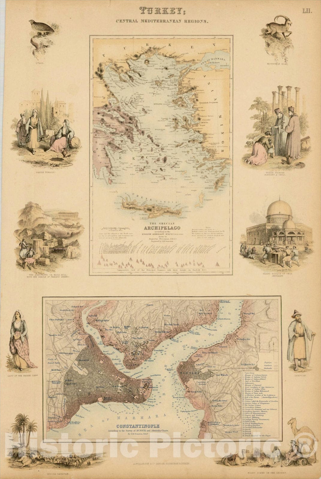 Historic Map : Turkey; Central Mediterranean Regions (and) Constantinople , 1855, Archibald Fullarton & Co., Vintage Wall Art