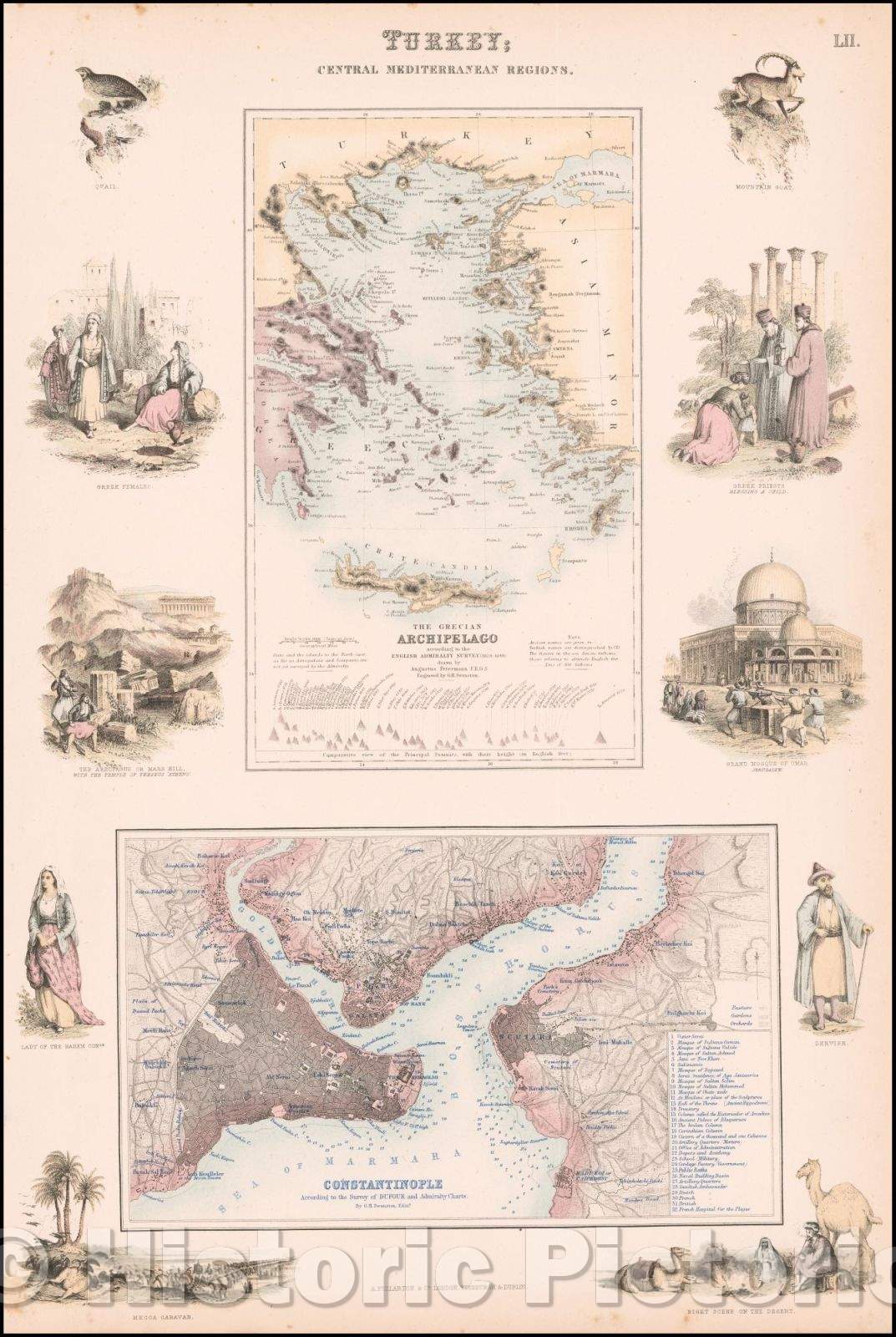 • .Historic Map - Turkey; Central Mediterranean Regions (and) Constantinople, 1855, Archibald Fullarton & Co. - Vintage Wall Art