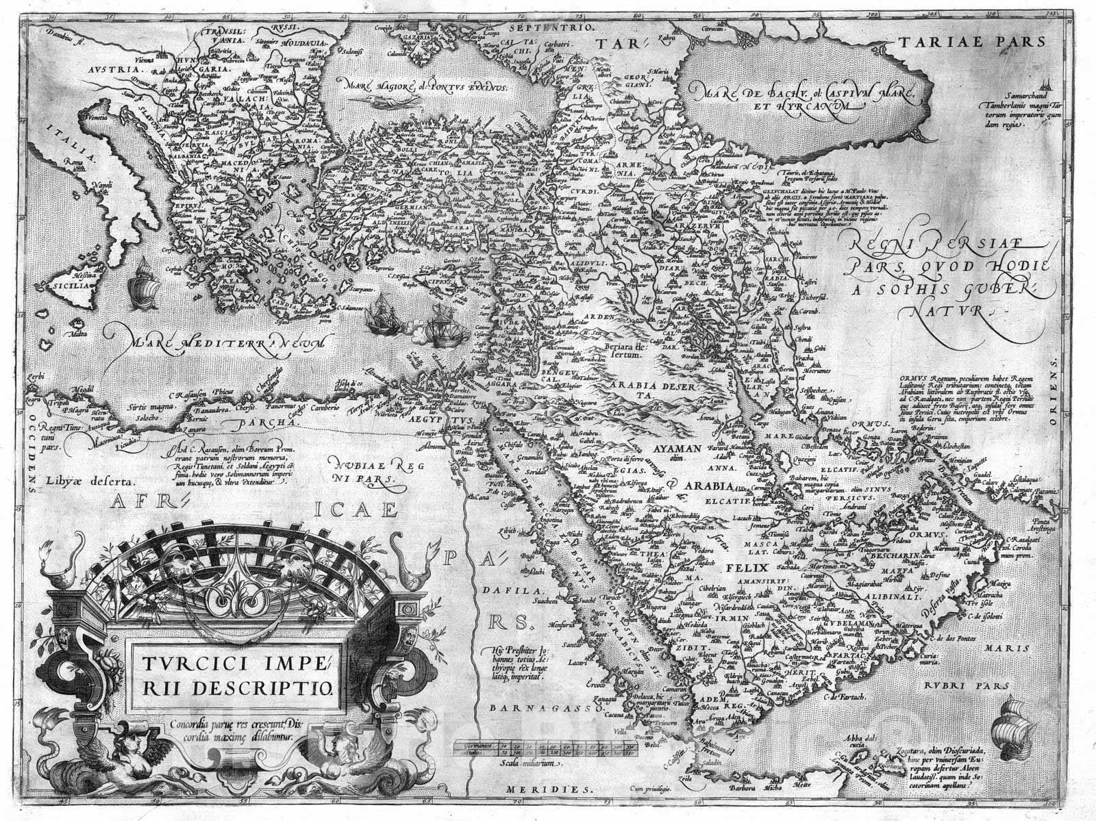 • .Historic Map : Turkey, Mediterranean 1570 (50) Turcici Imperii. , Vintage Wall Art