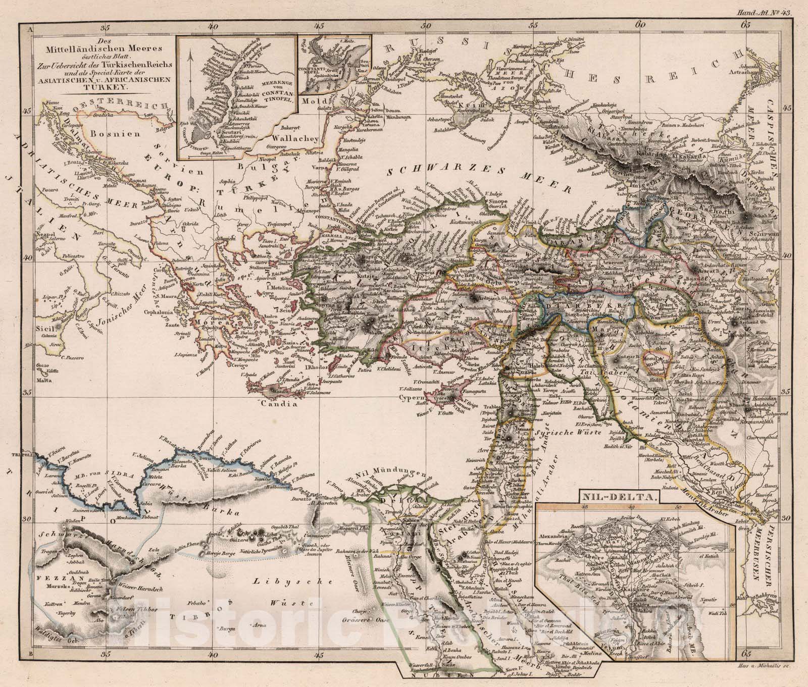 Historic Map : Turkey, Mediterranean Region 1833 Das mittellandische Meeres: Ostliches Blatt. , Vintage Wall Art