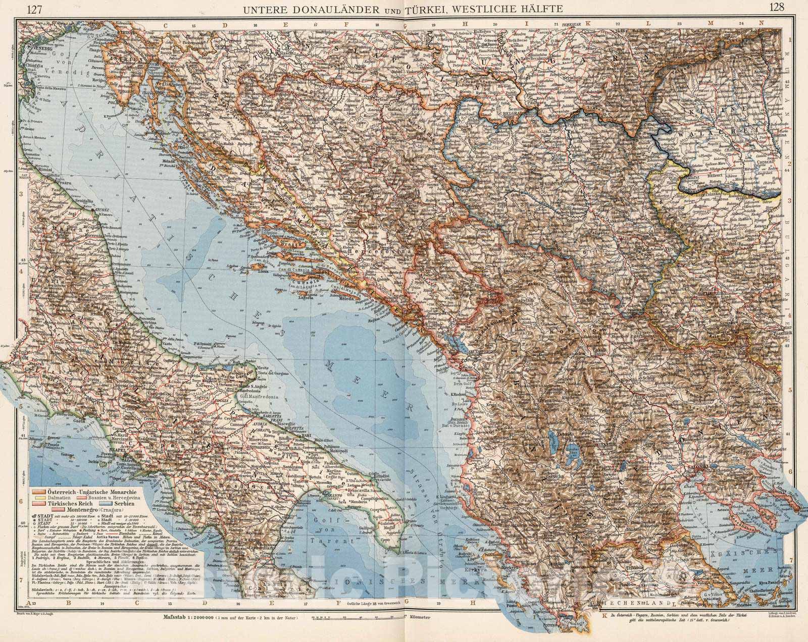 • .Historic Map : Turkey, Mediterranean Region 1905 Untere Donaulander und Turkei, Westliche Halfte , Vintage Wall Art