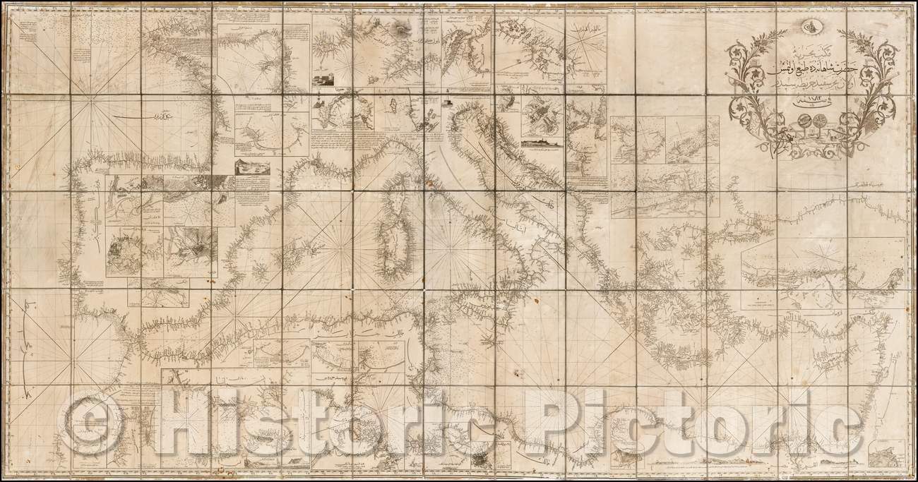 Historic Map - Turkish Sea Chart of the Mediterranean, 1865, Mekteb-i Bahriye Hazreti ?ahane v2