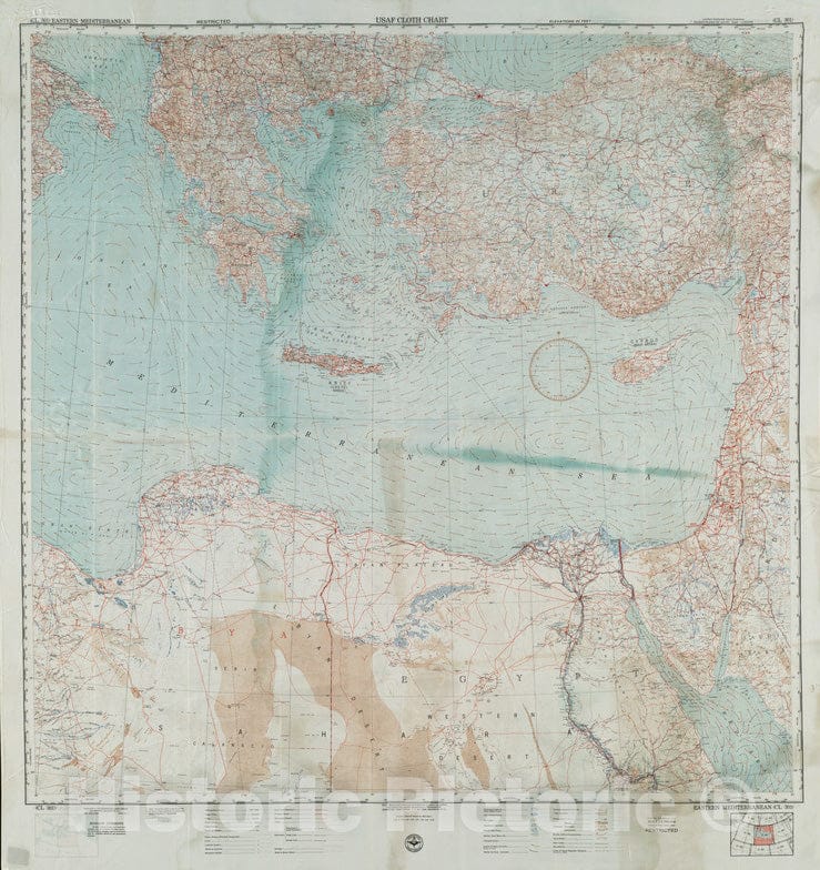 • Historical Map, 1951 Eastern Mediterranean, Vintage Wall Art