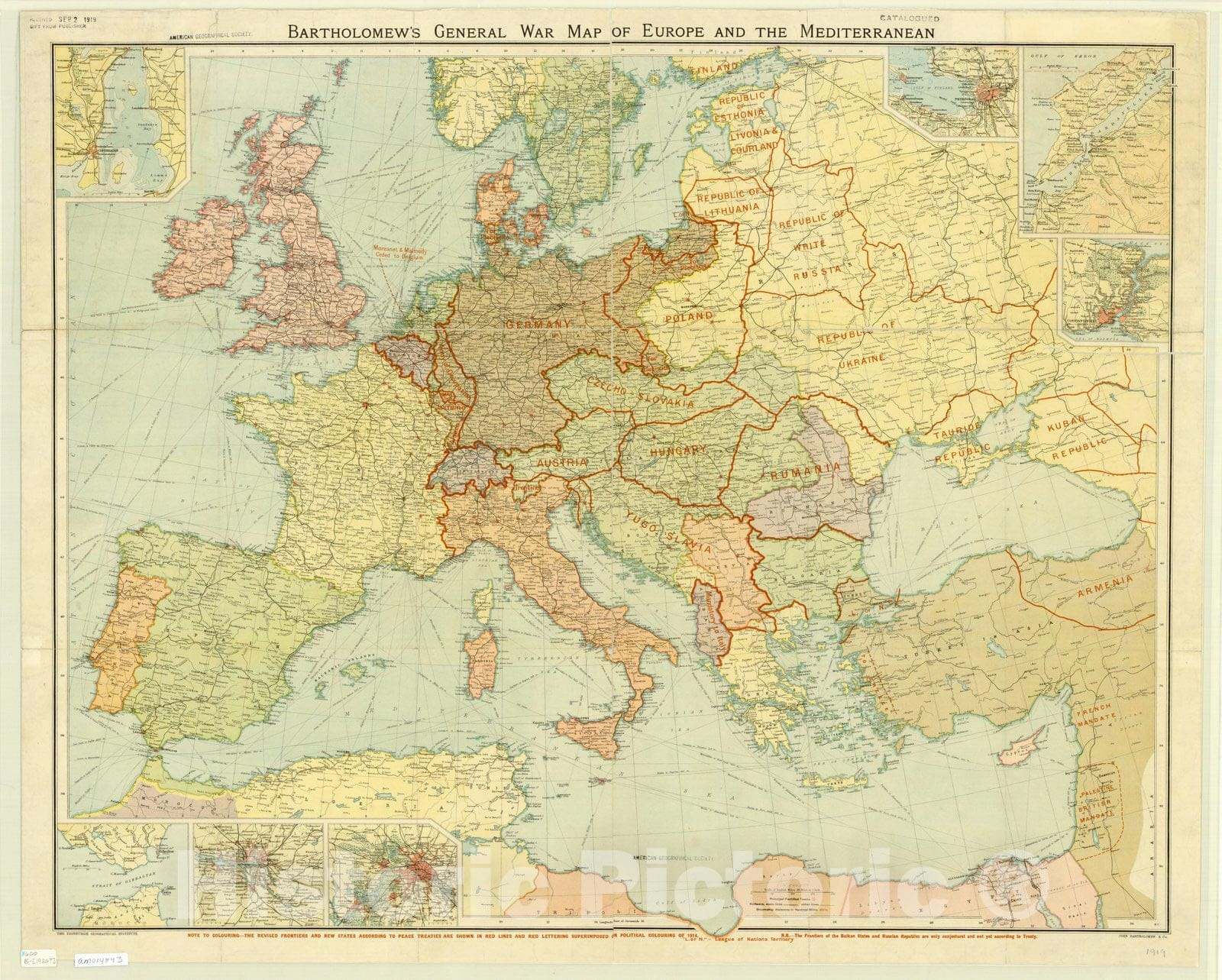 Map : Europe 1920, Bartholomew's general war map of Europe and the Mediterranean , Antique Vintage Reproduction
