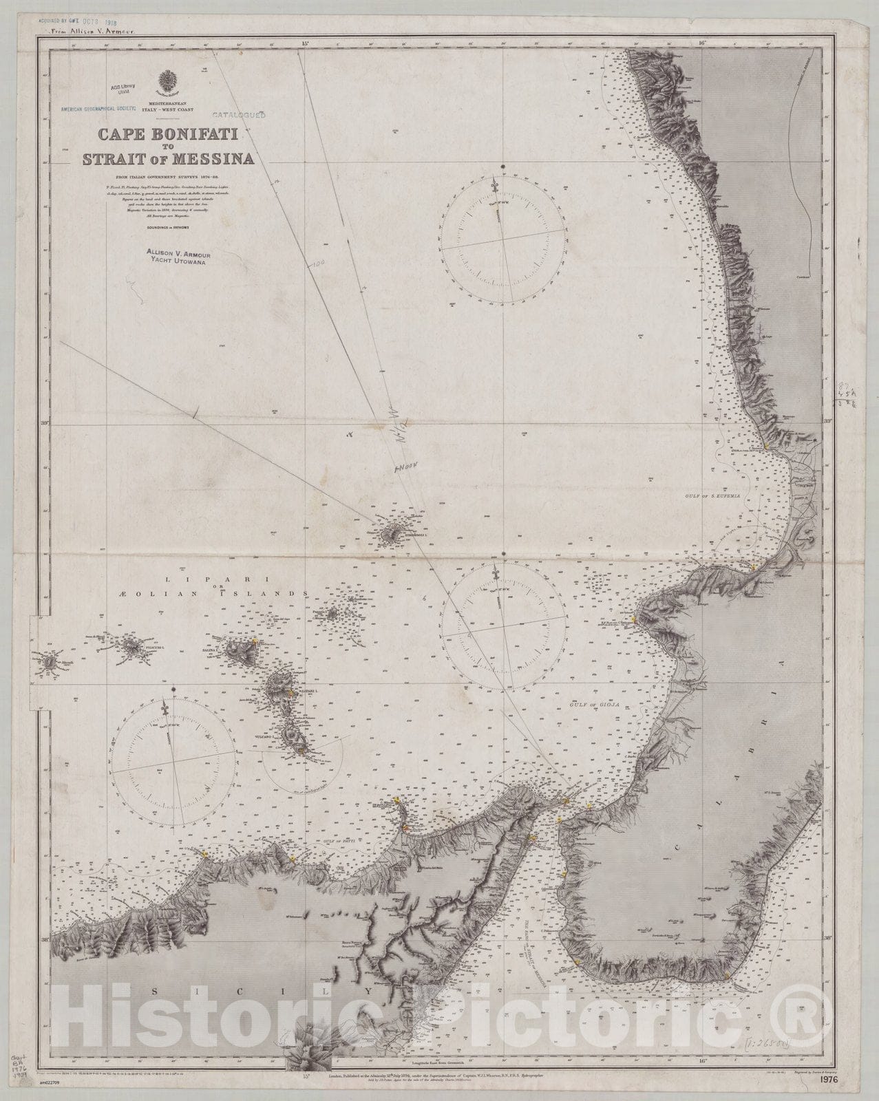 Mediterranean, Italy, West Coast, Cape Bonifati to Strait of Messina / published at the Admiralty 12th July 1894 ; Engraved by Davies & Company.Edition: Small corrections ... 09
