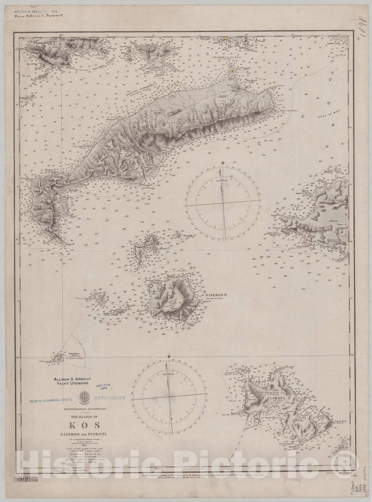 • .Map : Kos, Niseros and Piskopi, Greece 1890, Mediterranean Archipelago, the islands of Kos, Niseros and Piskopi , Antique Vintage Reproduction
