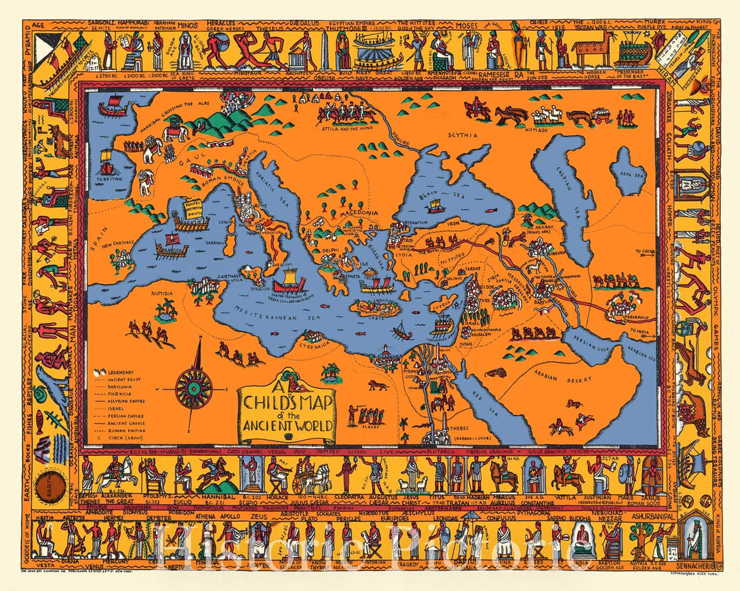 Map : Mediterranean Region 1926, A child's map of the ancient world : [Mediterranean Region and Near East] , Antique Vintage Reproduction