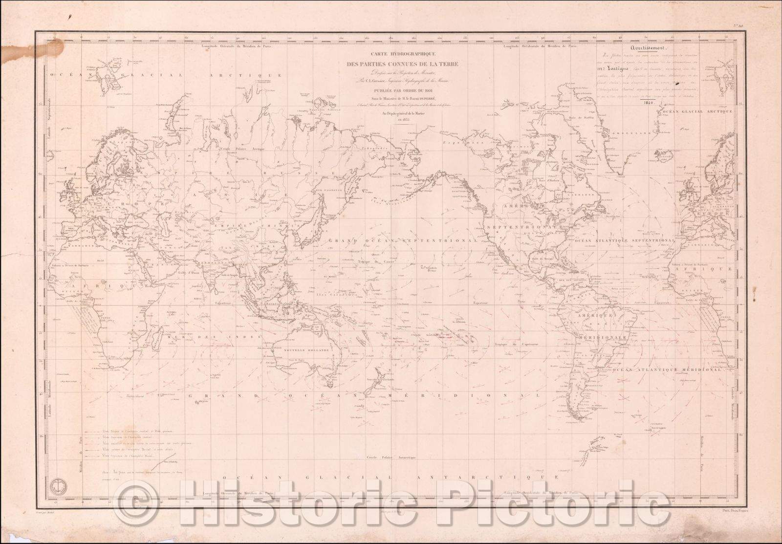 Carte Hydrographique Des Partes Connues/Hydrographic Map Of Partes Known Of The Earth erected on the Mercator Projection, 1840