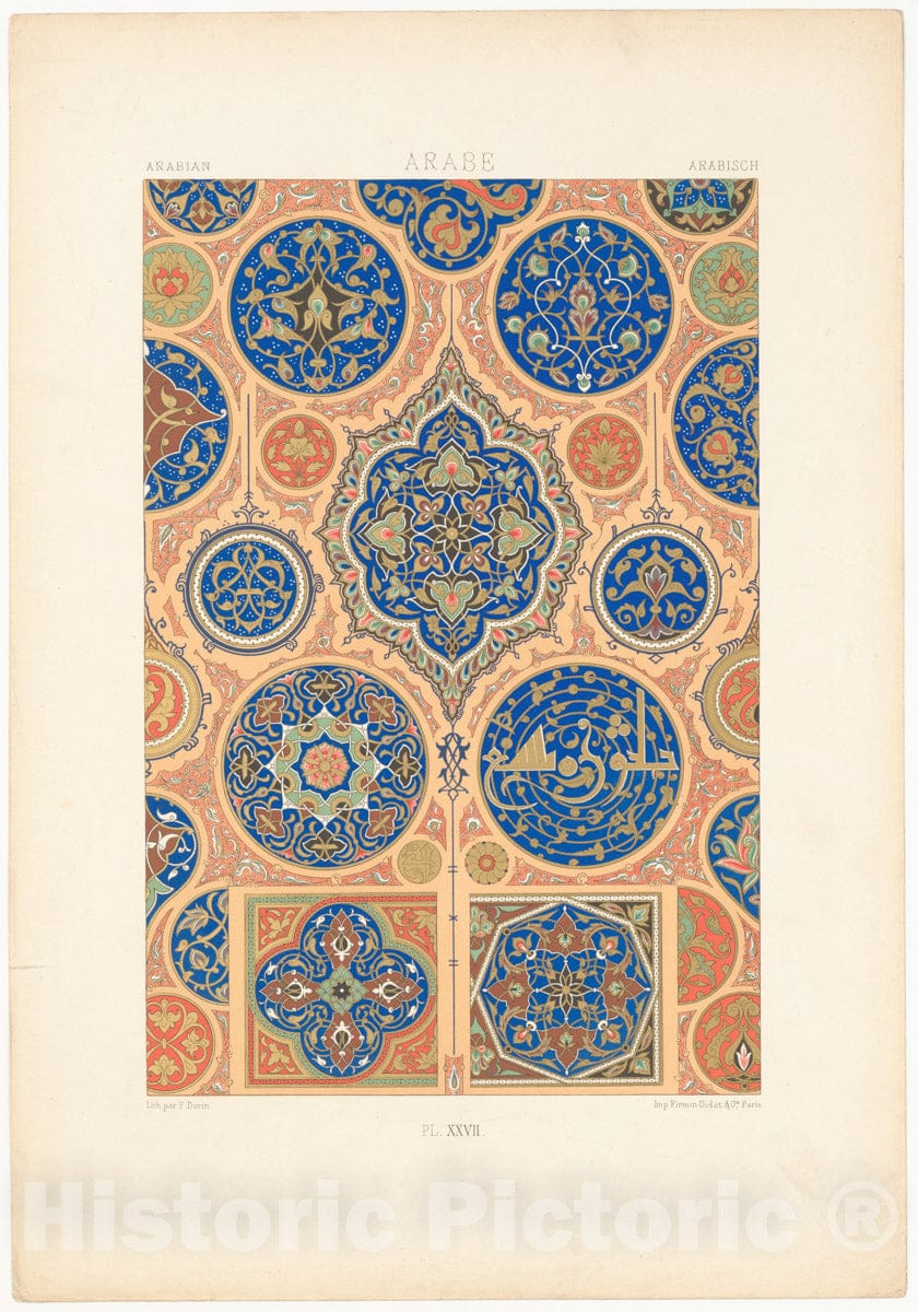 Art Print : Albert-Charles-Auguste Racinet - L'Ornement Polychrome : Vintage Wall Art