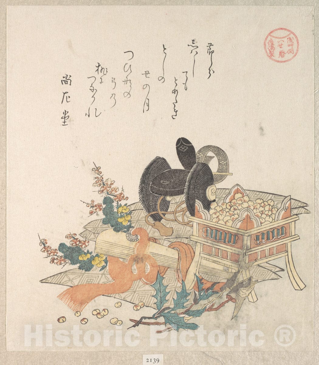 Art Print : “Beans for Tossing During Setsubun Exorcism Ceremony,” from The Series Ise Calendars for The Asakusa Group - Artist: Kubo Shunman - 1810s : Vintage Wall Art