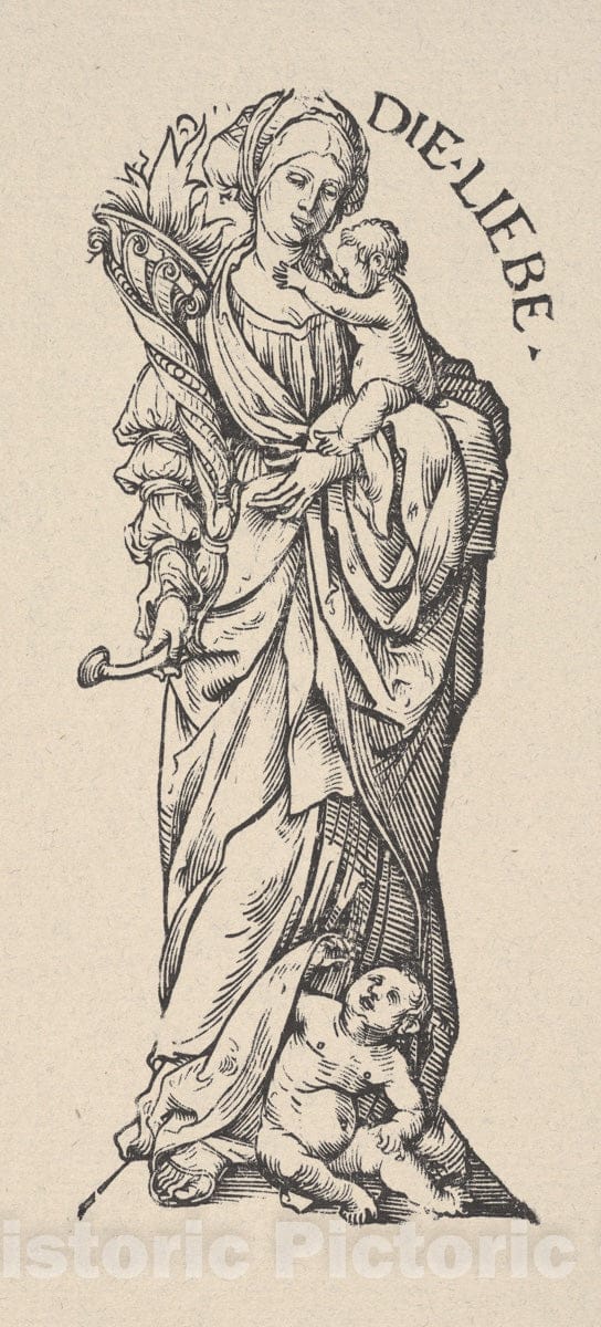 Charity (Die Liebe), from The Seven Virtues, in Holzschnitte alter Meister gedruckt von den Originalstcken der Sammlung Derschau im besitz des Staatlichen Kupferstich-kabinetts zu Berlin - German, Augsburg 1473-1531 Augsburg - Artist Nationality: German-German - Original Medium, Materials or Technique: Woodcut; restrike of third state of three (Hollstein)