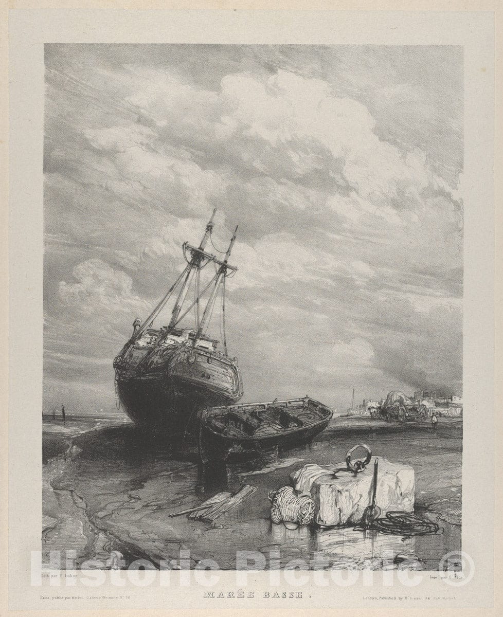 Low Tide - French, 1785-1836-French, Paris 1803-1886 Lagny - Artist Nationality: French-British-French-French - Original Medium, Materials or Technique: Lithograph on chine colle; first state of two, without griffonage on upper right