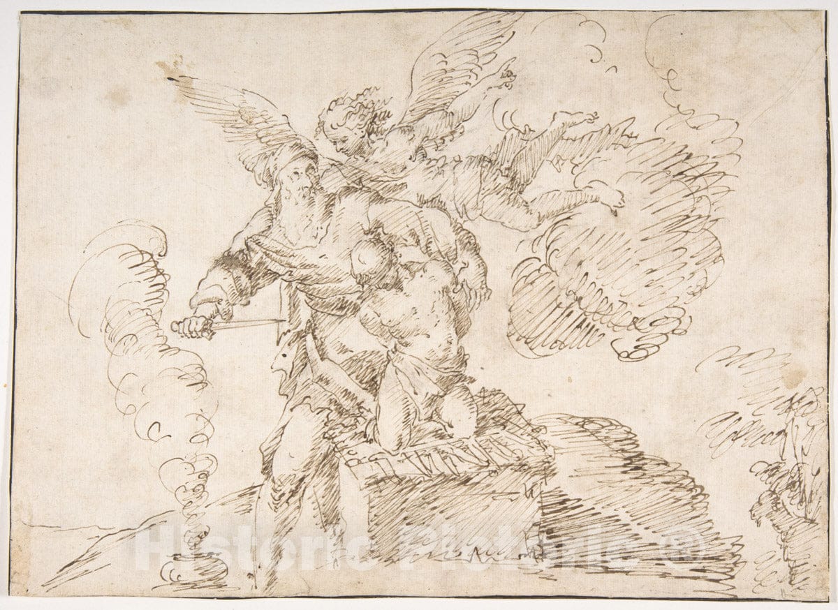 Abraham about to Sacrifice Isaac - Italian, Monopoli 1612-1656 Naples (?) - Artist Nationality: Italian - Original Medium, Materials or Technique: Pen and brown ink, over traces of black chalk