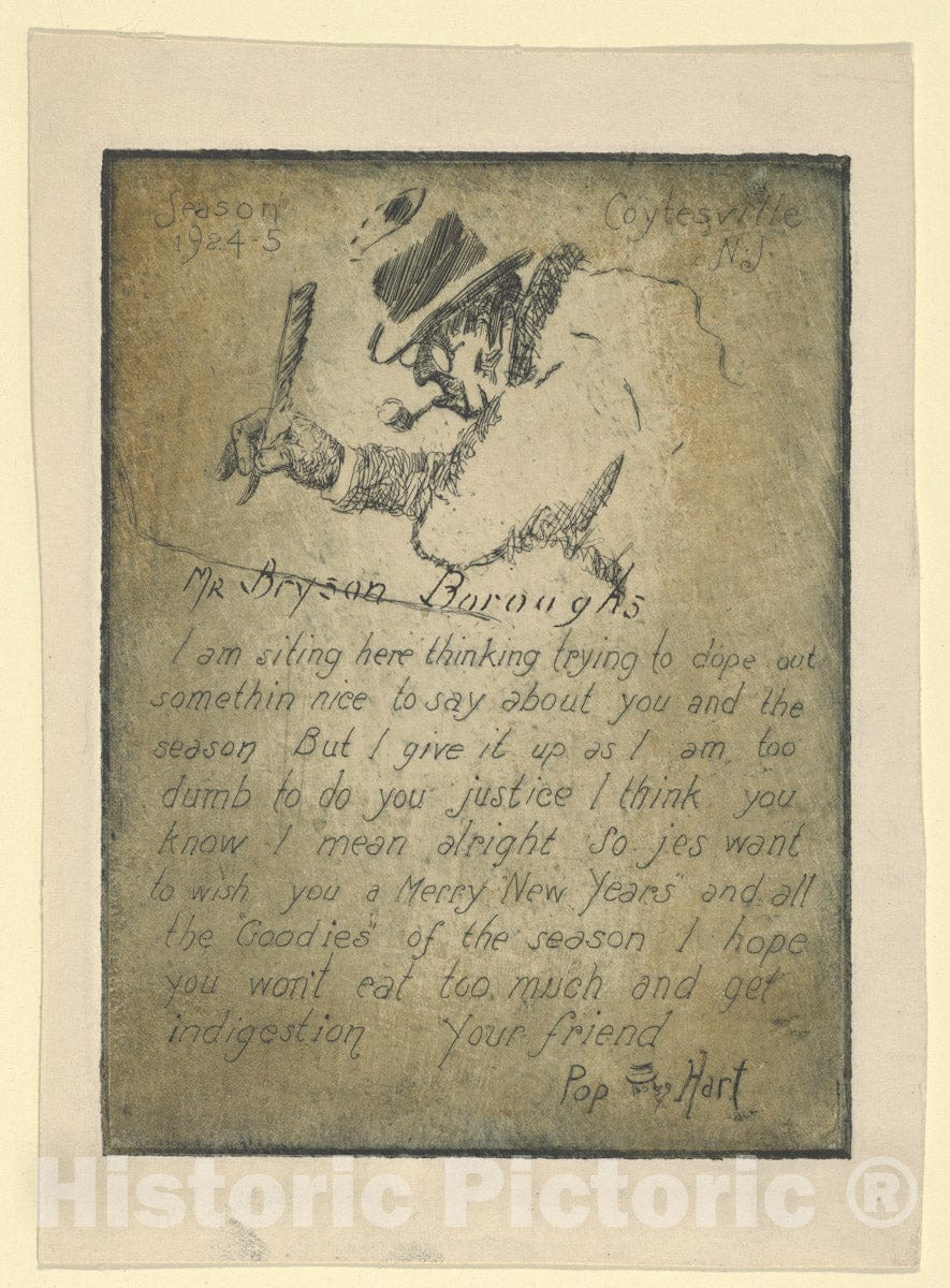 Art Print : George Overbury Pop Hart - Season's Greetings, 1924-1925, addressed to Mr. Bryson Boroughs : Vintage Wall Art