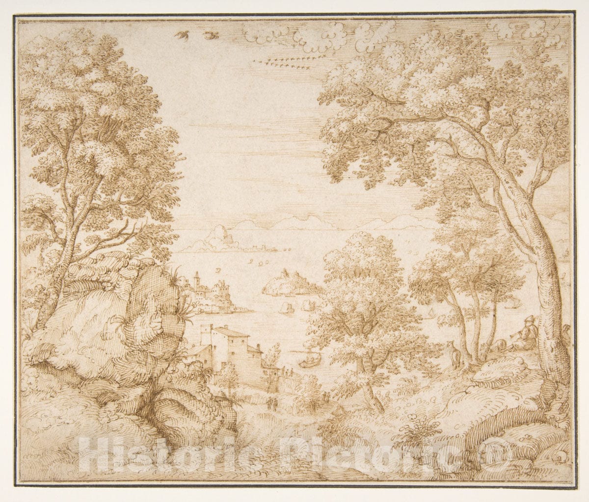 Coastal Landscape - Italian, Genoa 1512-1600 Rocca Contrada (Arcevia) - Artist Nationality: Italian - Original Medium, Materials or Technique: Pen and brown ink