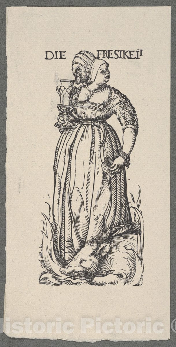 Gluttony (Die Fresikeit), from The Seven Vices, in Holzschnitte alter Meister gedruckt von den Originalstcken der Sammlung Derschau im besitz des Staatlichen Kupferstich-kabinetts zu Berlin - German, Augsburg 1473-1531 Augsburg - Artist Nationality: German-German - Original Medium, Materials or Technique: Woodcut; restrike of second state of two (Hollstein)