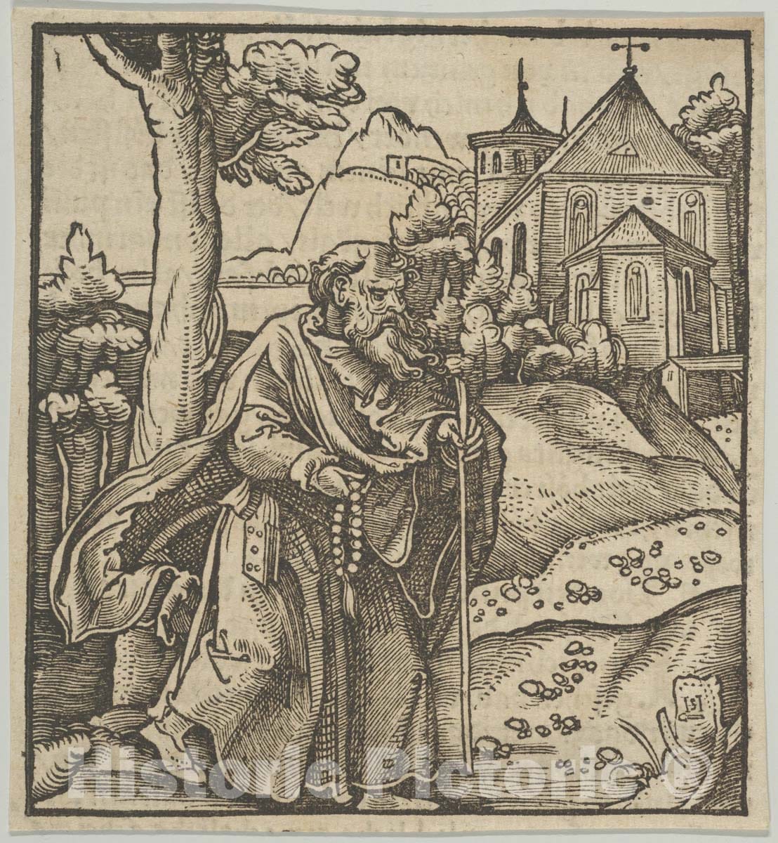 • Art Print : Hans Schäufelein - an Old Pilgrim Walking to The Right, from Hymmelwagen auff dem, wer WOL lebt. : Vintage Wall Art