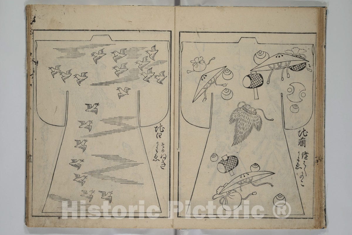 Contemporary Kimono Patterns (Tisei hiinagata) - Japanese, died 1694 - Artist Nationality: Japanese - Original Medium, Materials or Technique: Woodblock printed book; ink on paper