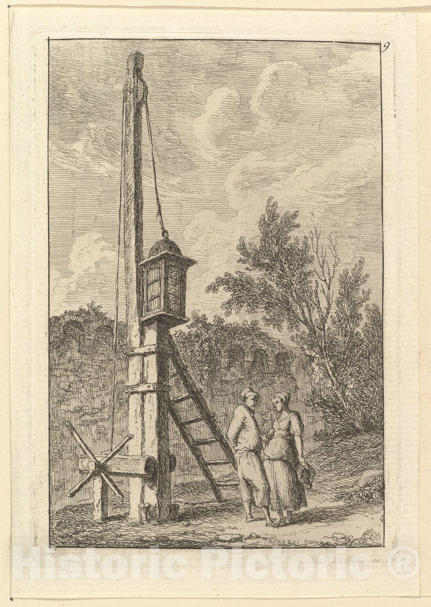• .Art Print : Hubert Robert - Le Poteau : Vintage Wall Art