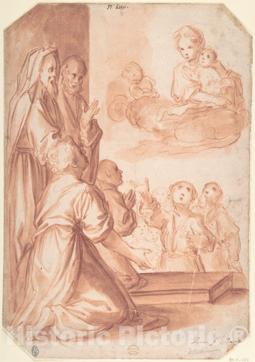Art Print : Italian, 16th to Early 17th Century - Madonna and Child and Worshippers : Vintage Wall Art