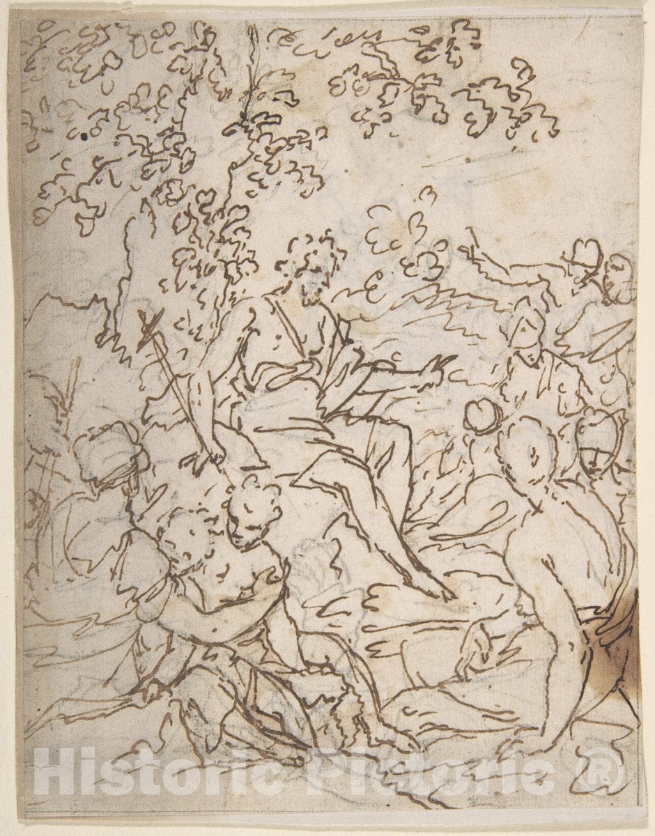 A Seated John the Baptist Preaching - Artist Nationality: Italian - Original Medium, Materials or Technique: Pen and brown ink, over black chalk.