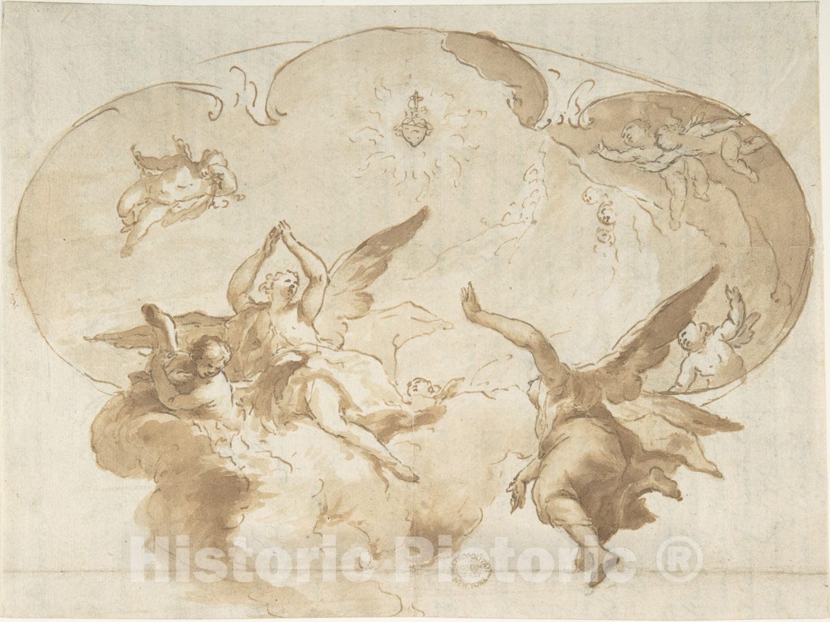 Art Print : Italian, Roman-Bolognese, 17th Century - Adoration of The Burning Heart: Ceiling Design : Vintage Wall Art