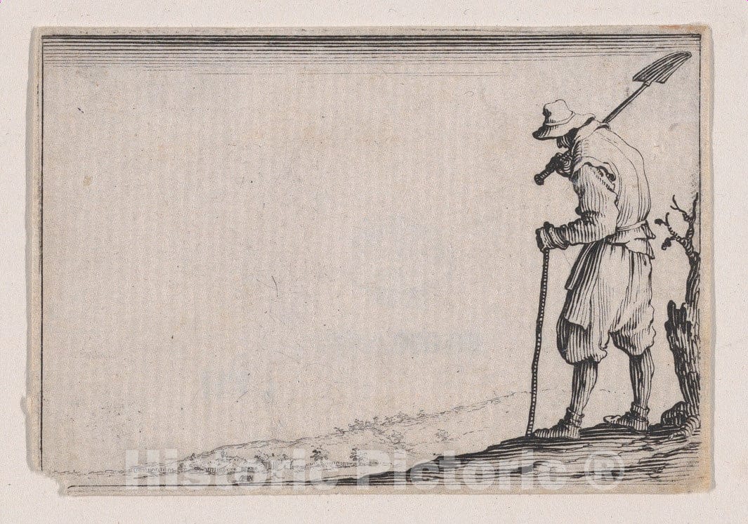 Art Print : Jacques Callot - Le Paysan Portant sa Pelle sur L'Épaule (The Peasant Carrying his Shovel on his Shoulder), from Les Caprices Series A, The Florence Set : Vintage Wall Art