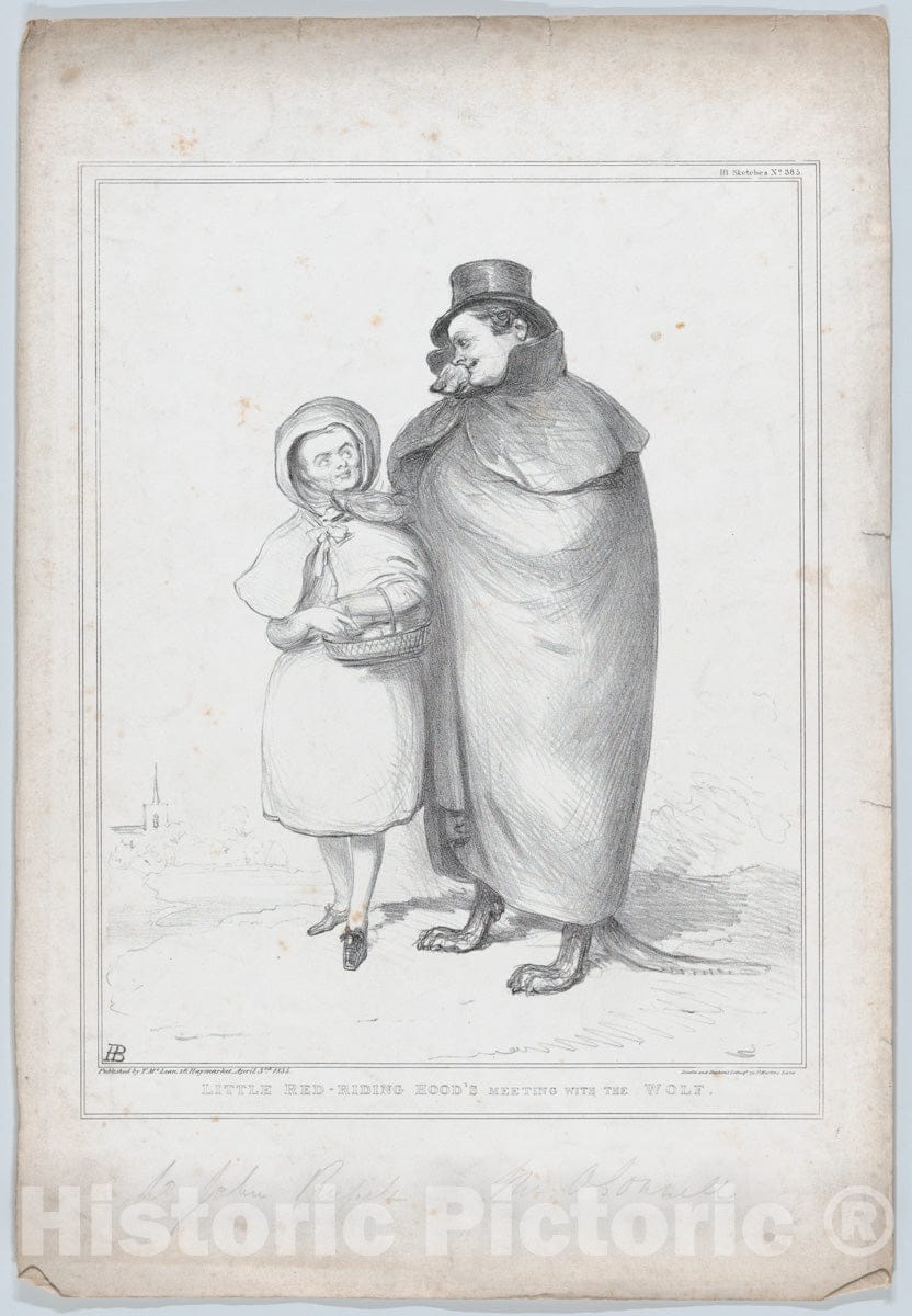 Little Red-Riding Hood's Meeting With the Wolf - Irish, Cahirciveen, Kerry 1775-1847 Genoa-British, 1792-1878-British, active 1830-40-Irish, Dublin 1797-1868 London-British, active London 1788-1885 - Artist Nationality: - Original Medium, Materials or Technique: Lithograph