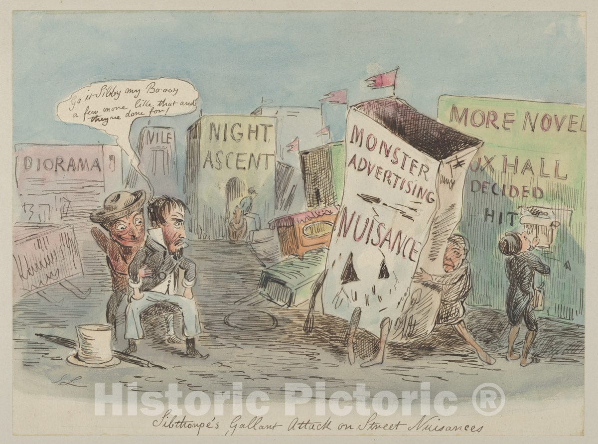 Lilthorpe's Gallant Attack on Street, Nuisances - British, London 1817-1864 London - Artist Nationality: British - Original Medium, Materials or Technique: Pen, brown ink, and watercolor