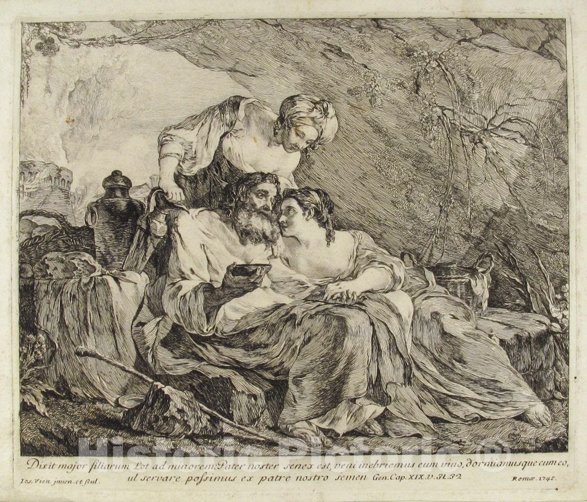 • Art Print : Joseph Marie Vien - Lot and His Daughters : Vintage Wall Art