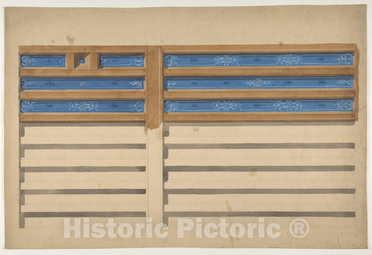 Design for a beamed ceiling with painted panels - French, died 1897-French, born Paris, 1820 - Artist Nationality: French-French - Original Medium, Materials or Technique: Graphite and watercolor on wove paper