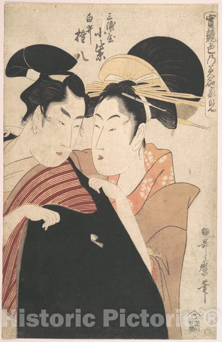 Art Print : Kitagawa Utamaro - The Lovers Miura-ya Komurasaki and Shirai Gonpachi. - Japan : Vintage Wall Art