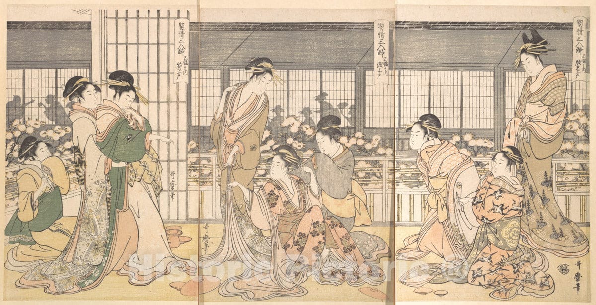 Art Print : Kitagawa Utamaro - Three Intoxicated Courtesans - Japan : Vintage Wall Art