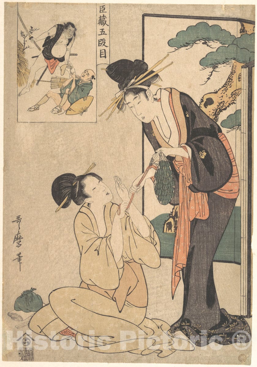 Art Print : Kitagawa Utamaro - A Woman Snatching a Bag of Sweetmeats from Her Mother - Japan : Vintage Wall Art