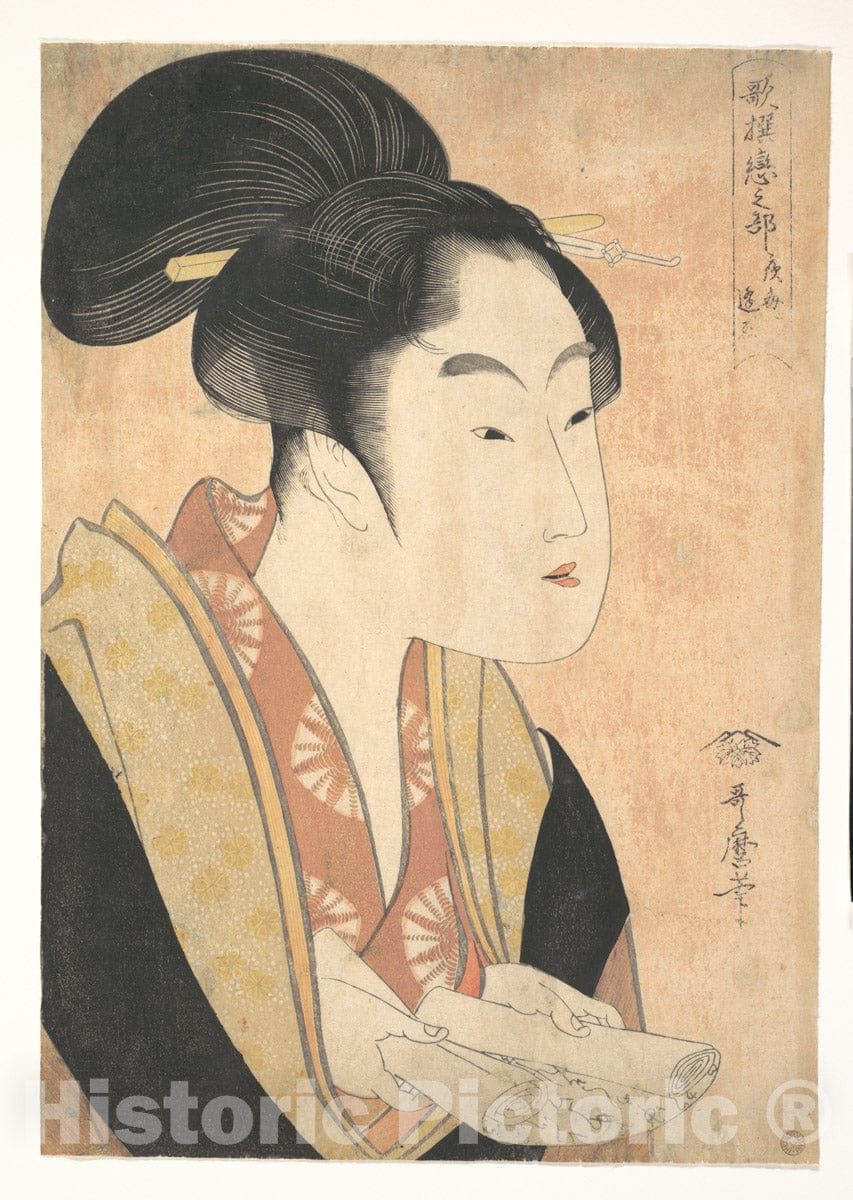 • .Art Print : Kitagawa Utamaro - A Young Woman Reading A Letter - Japan : Vintage Wall Art