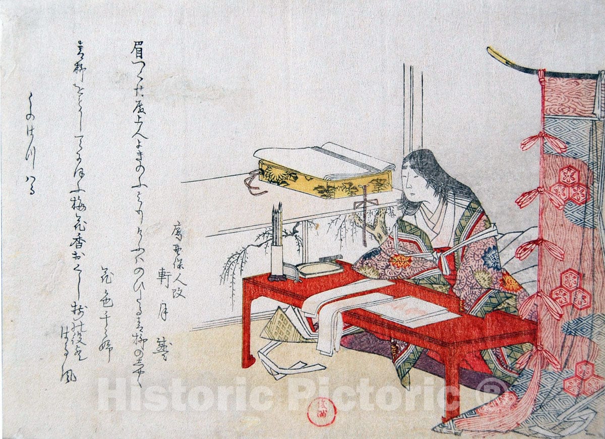 Art Print : Kubo Shunman - Court Woman at her Desk with Poem Cards - Japan : Vintage Wall Art