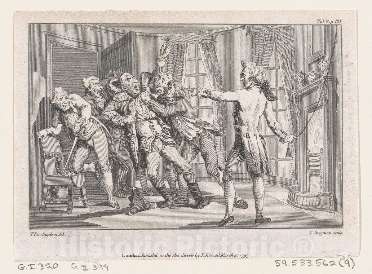 Art Print : Lord Oxmington Repelling Lismahago's Challenge to Single Combat - Artist: James Sibbald - Created: 1793 : Vintage Wall Art