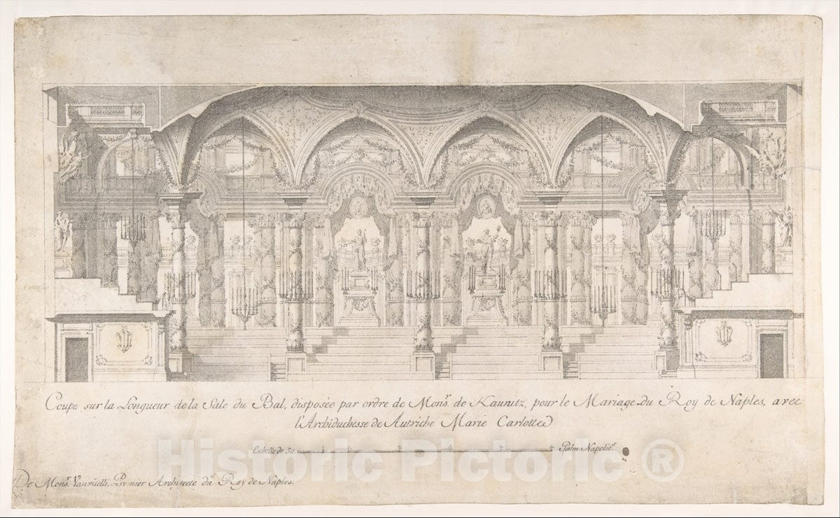 Art Print : Luigi Vanvitelli - Longitudinal Section of a Ballroom Decorated for The Marriage of The King of Naples to The Archduchess of Austria : Vintage Wall Art