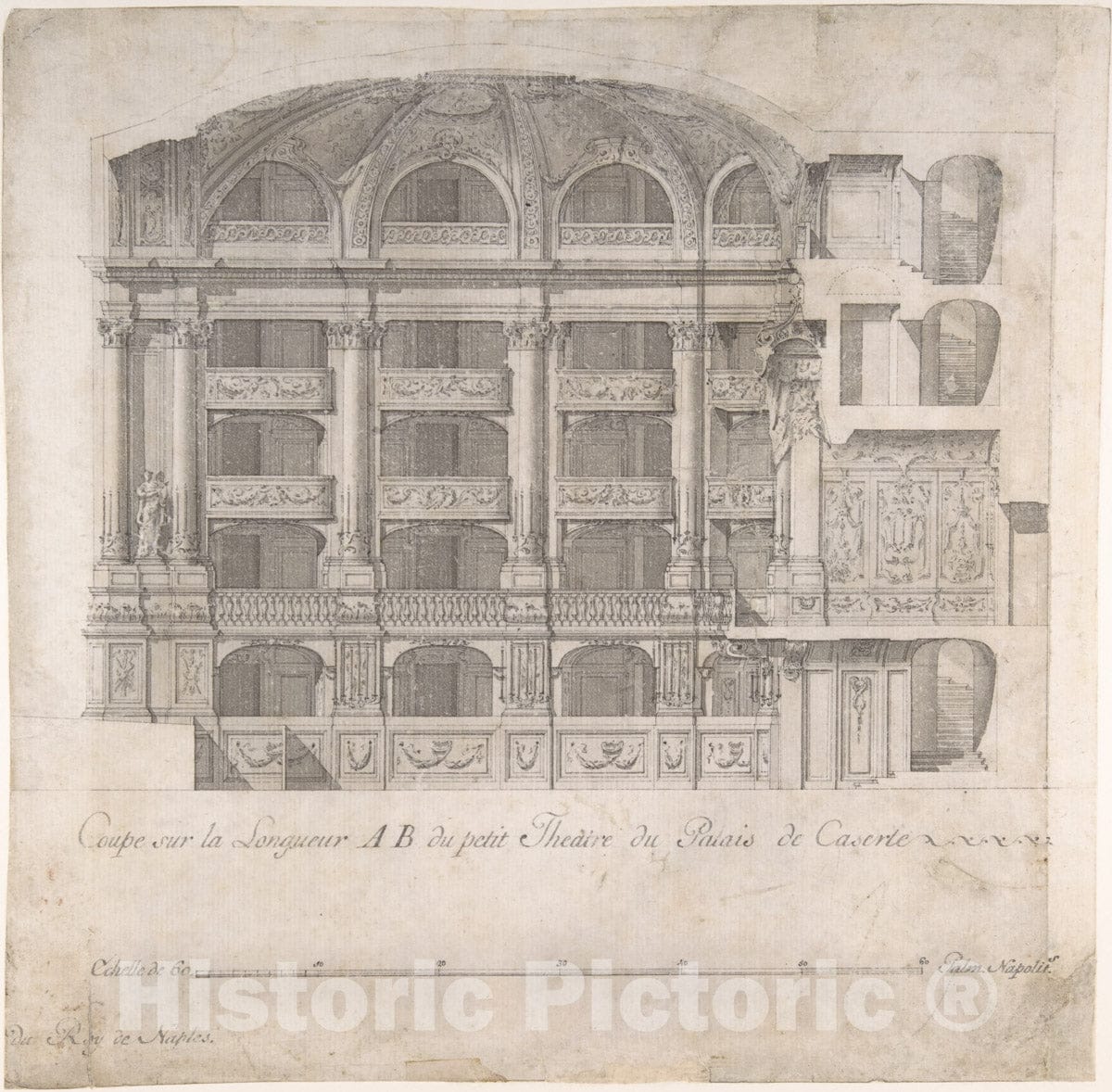 Art Print : Luigi Vanvitelli - Longitudinal Section of The Small Theater in The Palace at Caserta : Vintage Wall Art