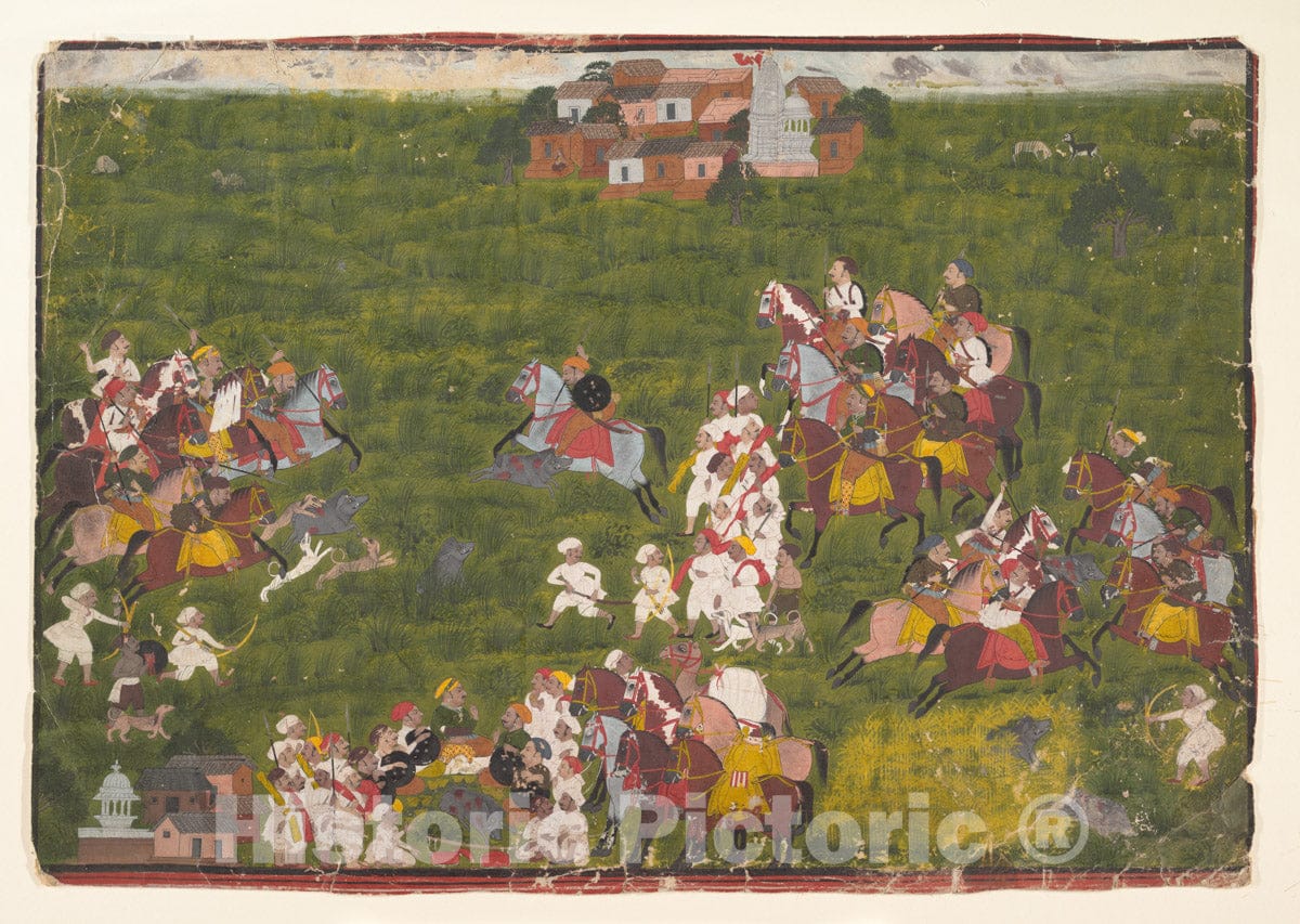 Art Print : Maharana Sangram Singh Hunting Wild Boar : Vintage Wall Art