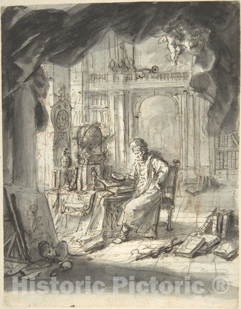 An Oriental Astronomer in His Study - Austrian, Grafenwrth 1718-1801 Stein - Artist Nationality: Austrian - Original Medium, Materials or Technique: Pen and brown-black and gray ink, gray wash