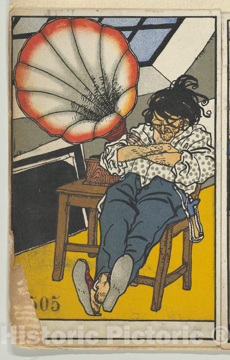 A Beethoven Enthusiast (Ein Beethovenschwarmer) - Austrian (born Czechoslovakia) Moravia 1885-1915 Manilowa (Carpathians) - Artist Nationality: Austrian - Original Medium, Materials or Technique: Color lithograph