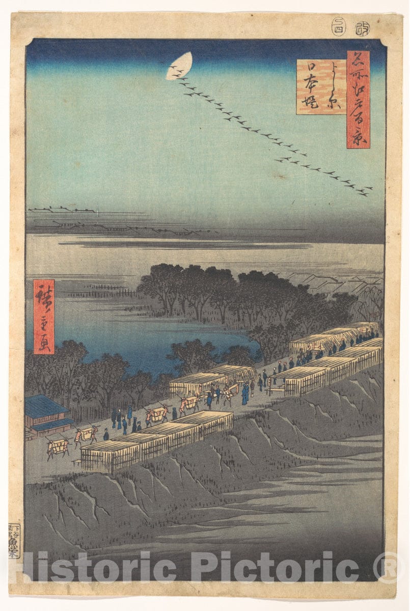• .Art Print : “Nihon Embankment at Yoshiwara,” from The Series One Hundred Famous Views of Edo - Artist: Utagawa Hiroshige - Created: 1857 : Vintage Wall Art