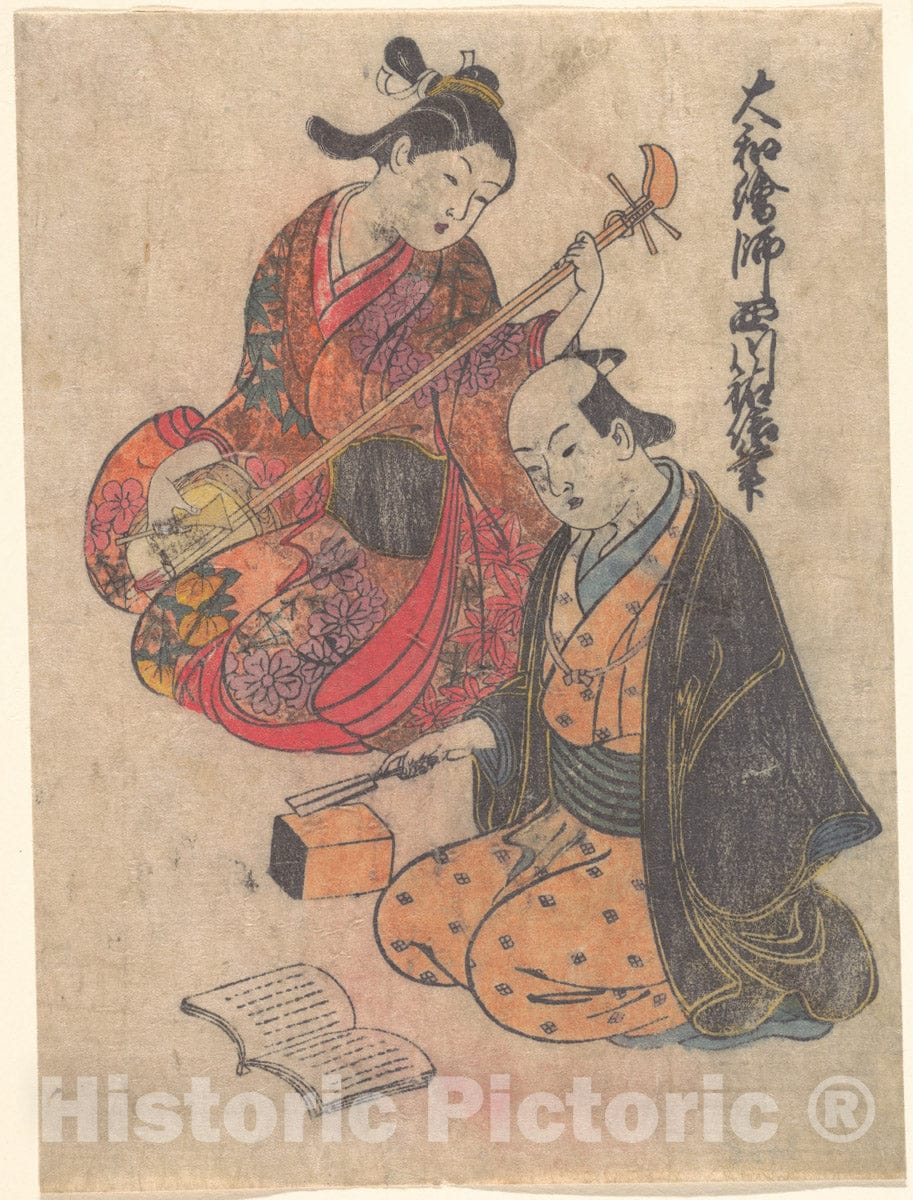 Art Print : Nishikawa Sukenobu - Young Lady Taking a Lesson on the Shamisen : Vintage Wall Art